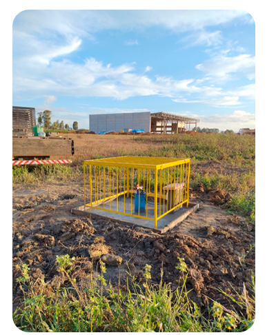 Instalação de um poço com praparo do solo e grade de proteção.